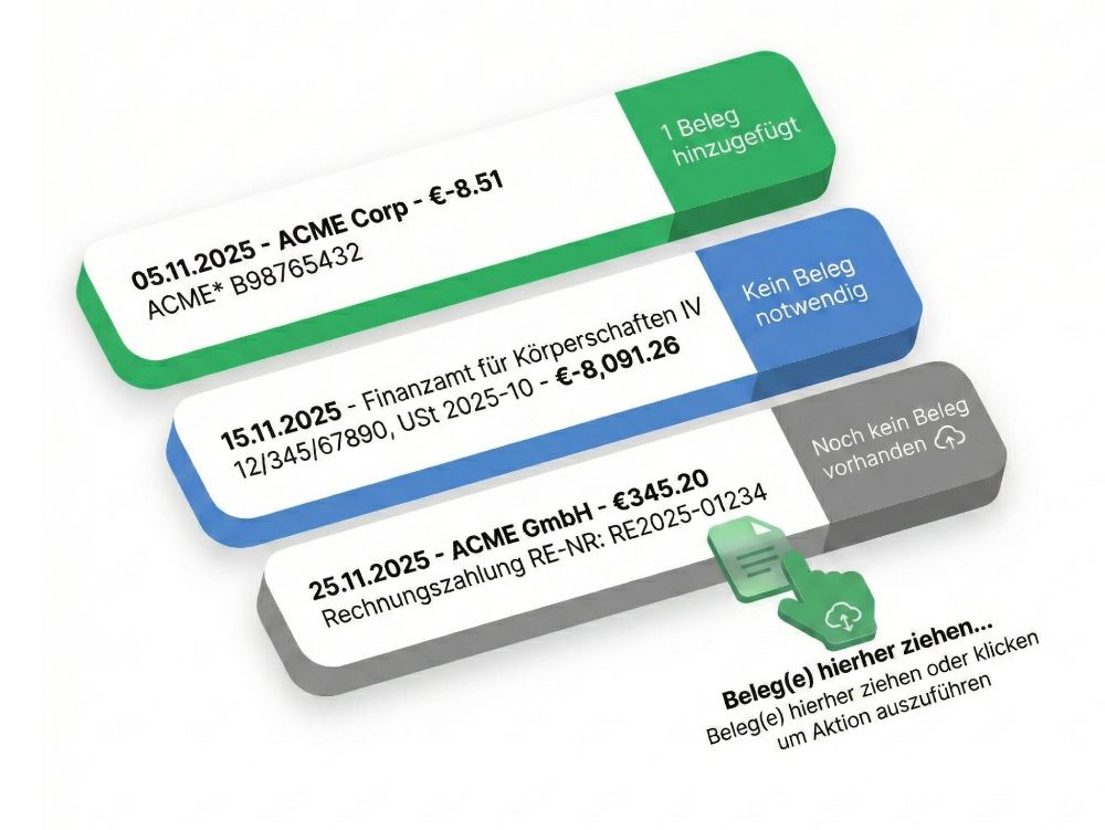 Belege werden automatisch ausgelesen und auf Basis vergangener Transaktionen entstehen präzise Buchungsvorschläge, die sich nahtlos in die vorbereitende Buchhaltung einfügen.